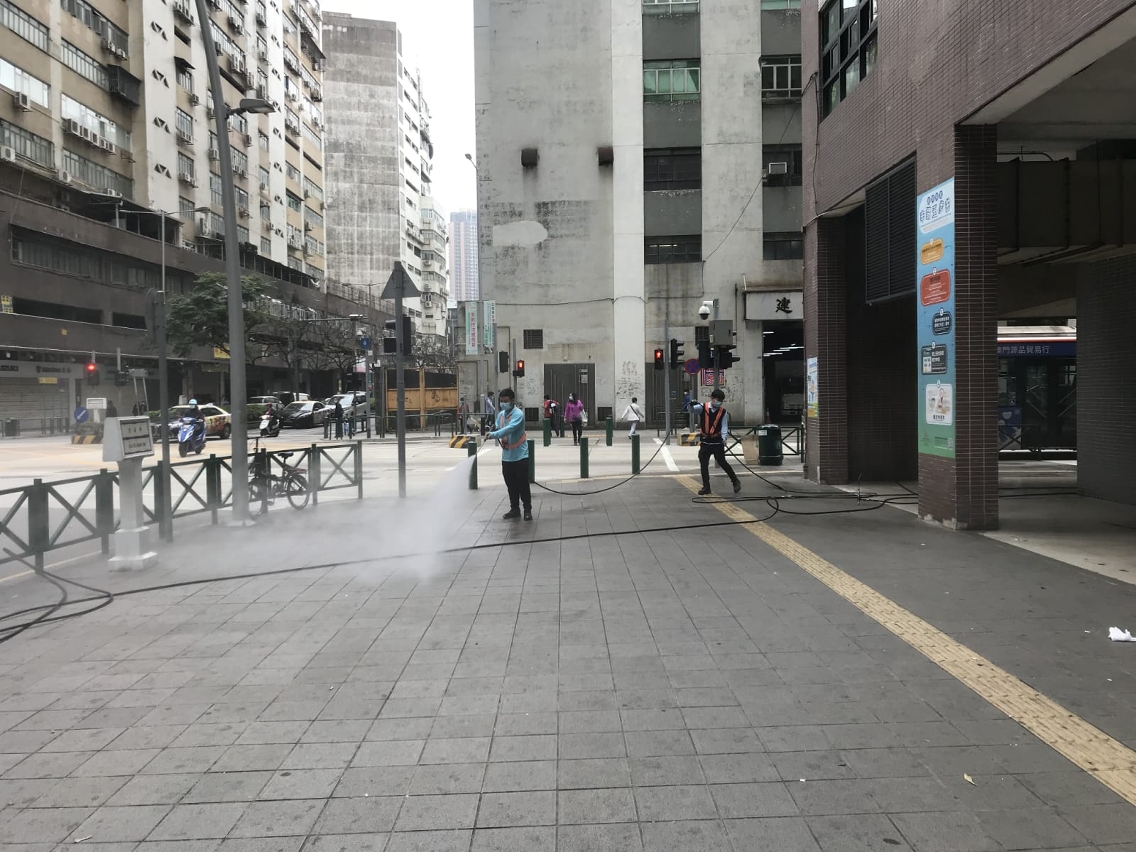 市政署一直密切关注疫情发展,已协调澳门清洁专营有限公司全面使用稀释漂白水清洗各区公共街道,市政署亦已因应公共街道的卫生状况,安排清洗工作。