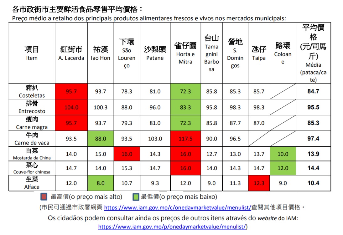 (市民可通过市政署网页https://www.iam.gov.mo/c/onedaymarketvalue/menulist/查阅其他项目价格。)