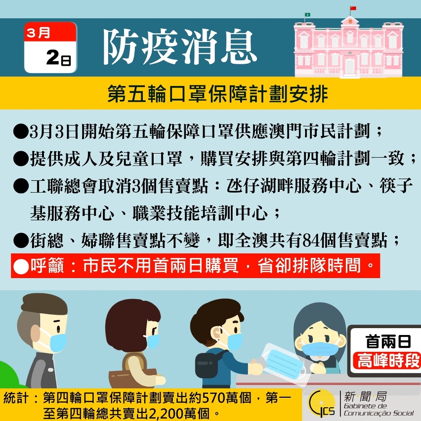 第5轮保障口罩供应澳门居民计划明(3)日开始