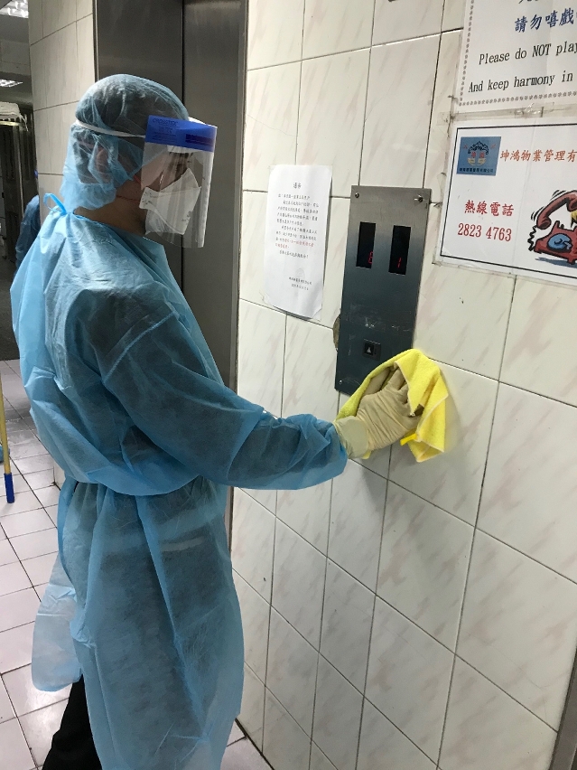 对确诊患者居住大厦公用空间及设施加强清洁消毒