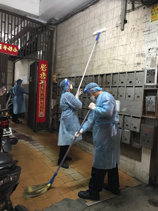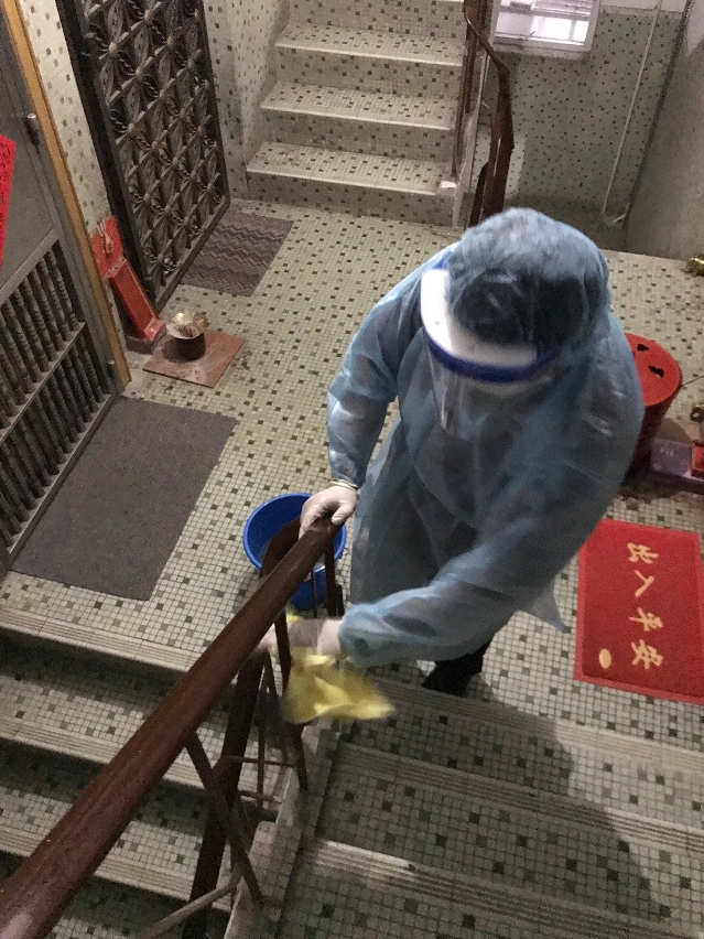 配合新型冠状病毒肺炎的防控工作,市政署于三月三十日协调清洁专营公司及外判清洁加派人手,对一宗香港确诊者在澳门活动期间的居所及曾到访的大厦,进行大型的清洁及消毒工作,包括两座大厦周边的街道、大厦门口及各楼层楼梯等公用空间,尽力减低传染病传播的条件。