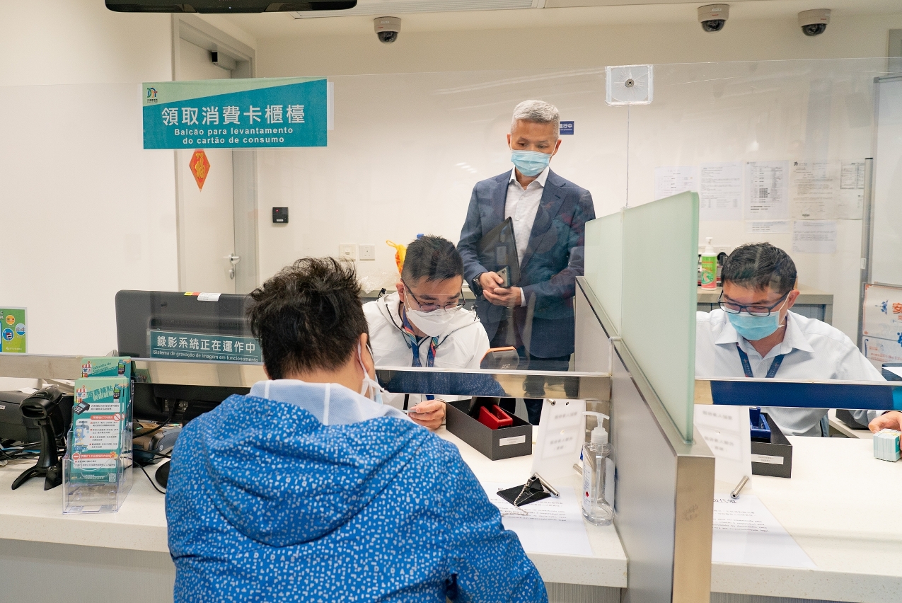 “电子消费卡”于今(14)日起供已登记的居民领取,截至下午6时,已领卡的居民超过2万5千人,各领卡服务点人流秩序大致良好。