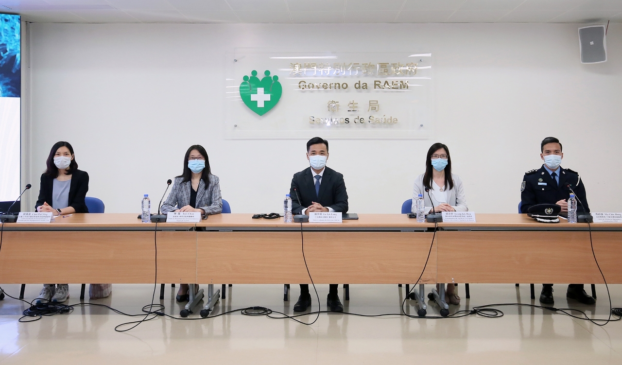 新型冠状病毒感染应变协调中心(下称应变协调中心)于今(17)日举行例行记者会,仁伯爵综合医院罗奕龙医务主任、旅游局执照及监察厅陈露厅长、治安警察局行动及通讯处马超雄处长、社会工作局社会设施准照及监察处蔡佩盈处长、疾病预防控制中心传染病防制暨疾病监测部梁亦好协调员共同会见传媒。