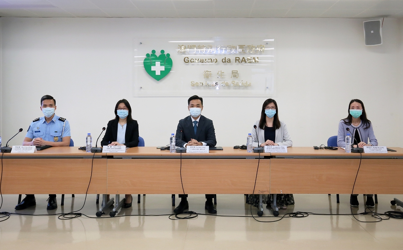 新型冠状病毒感染应变协调中心(下称应变协调中心)于今(21)日举行例行记者会,仁伯爵综合医院罗奕龙医务主任、旅游局执照及监察厅陈露厅长、治安警察局行动及通讯处马超雄处长、疾病预防控制中心传染病防制暨疾病监测部梁亦好协调员、社会工作局儿童及青少年服务处幼儿服务工作组黄燕玲职务主管共同会见传媒。