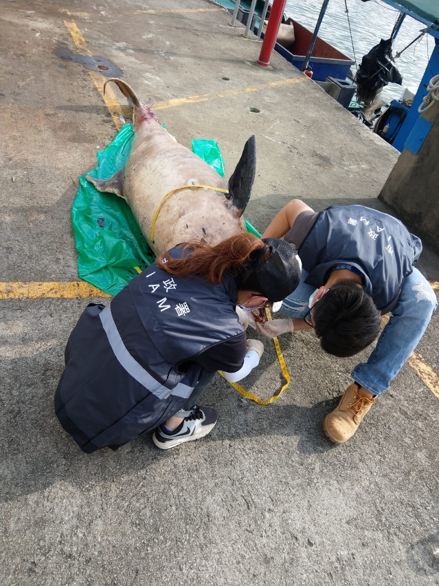 市政署接报后,即时安排人员到现场跟进。经检查和初步测量后,确定该海豚属雌性,体长约2.4米,暂未确定品种及年龄,须作进一步鉴定。尸体胸鳍及尾部有瘀伤,发现时腹部因有气体而轻微膨胀。据兽医解剖发现,胃内空无一物,亦未有见塑胶制品,具体死因须作进一步研究。