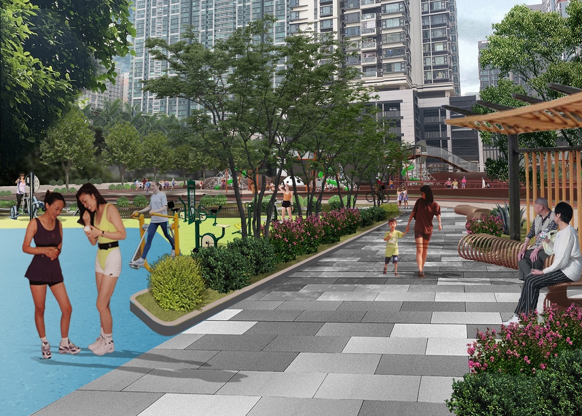 市政署冀善用现有土地资源,为北区市民创建多元优质的户外活动空间和多元的游乐设施及健身场地,计划把邻近林茂海边大马路之四幅闲置土地,以及与其相连的公共空间作整体规划及重整,并划分具规模的儿童游乐区和综合健身休憩区两大功能片区,整个规划总占地面积合共约六千二百二十平方米。在儿童游乐区中,会设有滚轴溜冰场、沙池玩乐区、具起伏坡度的游乐滑梯区,并建有儿童游乐设施、缓步径及多功能广场等,设计上会引入趣味性强及共融式游乐设施,为不同年龄层及需要的儿童提供交流及亲子活动场地。在综合健身休憩区中,将设篮球场及两个小型投篮练习区的「自由波地」,同时亦会设有不同强度及组合的健身器材,以供市民使用。为优化有关建设区域的步行环境及绿化景观,将一并重整周边的行人道,并结合该区域现有的树木扩大绿化范围,完善整体的绿化景观;同时设置具特色的桌椅及雨棚,营造与自然融合的遮阳及挡雨屏障,优化步行环境,创建雅致街道景观,为居民提供静态的休憩空间。