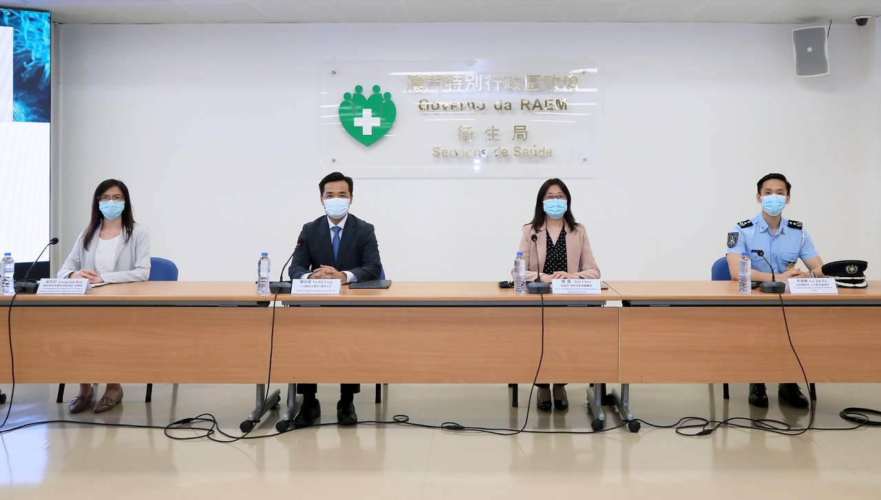 新型冠状病毒感染应变协调中心于今(17)日举行例行记者会,仁伯爵综合医院罗奕龙医务主任、旅游局执照及监察厅陈露厅长、治安警察局公共关系处李德辉处长、疾病预防控制中心传染病协调员梁亦好医生共同会见传媒。