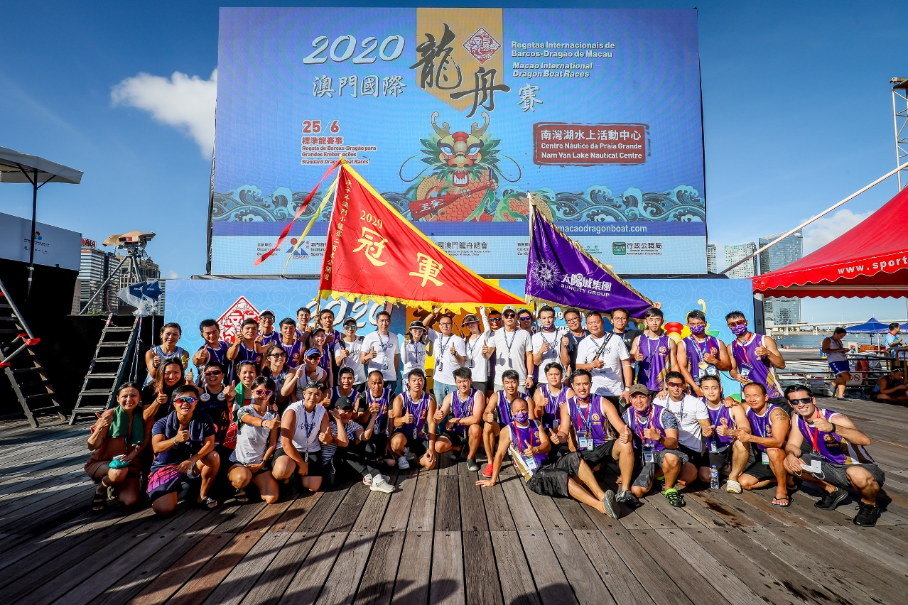 由体育局及中国澳门龙舟总会主办,市政署及行政公职局协办的“2020澳门国际龙舟赛”,今日(21日)在南湾湖水上活动中心上演。今日(21日)举行了多组龙舟小龙赛的赛事,经过一番激烈角逐之后,太阳城-传奇在澳门公开组小龙200米力压多队夺冠。