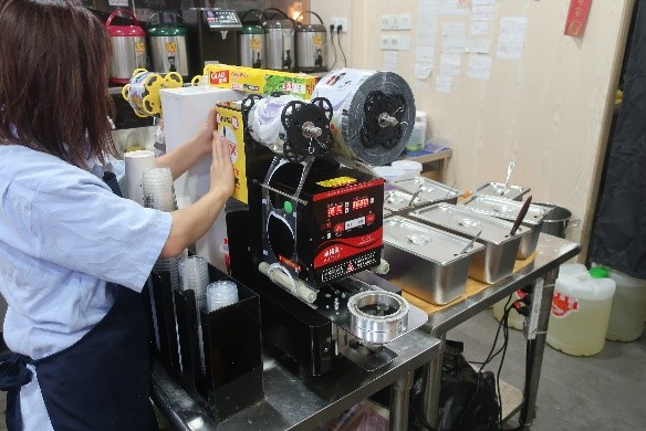为加强手摇饮品店从业员对安全使用机器的认知,劳工事务局于本年6月派员到全澳各区手摇饮品店进行职安健宣导工作,期间向119间手摇饮品店派发「预防伸手入机器内」和「饮品封口机安全使用守则」的标语贴纸,并提醒业界关注安全使用机器的重要性。与此同时,劳工局人员亦即场与从业员宣传交流有关工作环境、用电安全、安全使用机器等方面的职安健讯息,商户普遍支持是次活动,并即时配合在店铺内张贴上述标语贴纸。日后,劳工局会继续关注各行业的职安健状况,适时开展更多配合行业特性的职安健推广活动。