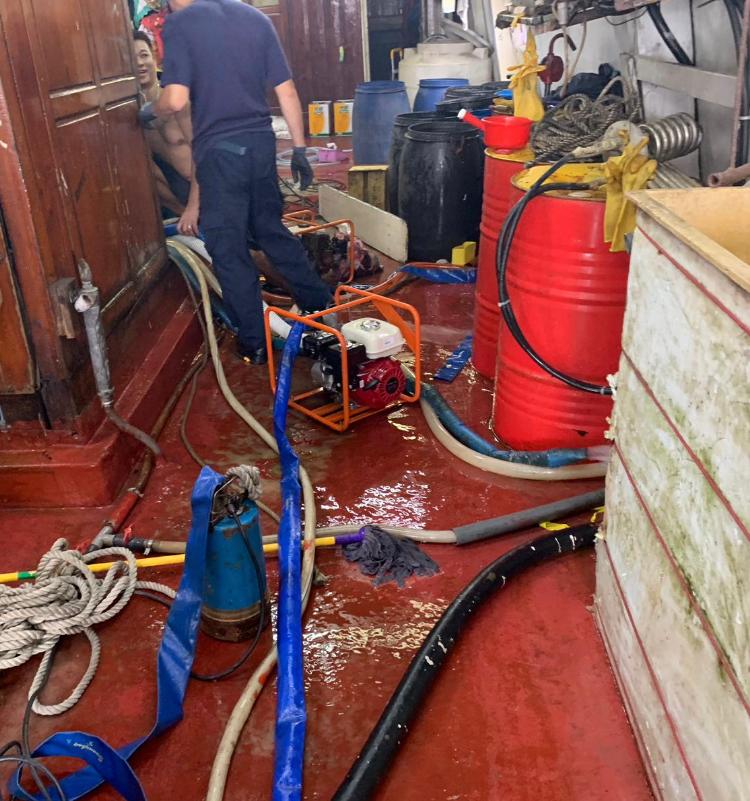 海事及水务局船舶交通管理中心于今日下午约2时24分接获海关通报,一艘正锚泊于内港码头的渔船入水,海事局、海关即时派船到场了解情况及协助泵走积水,渔船没有即时危险,无人受伤。