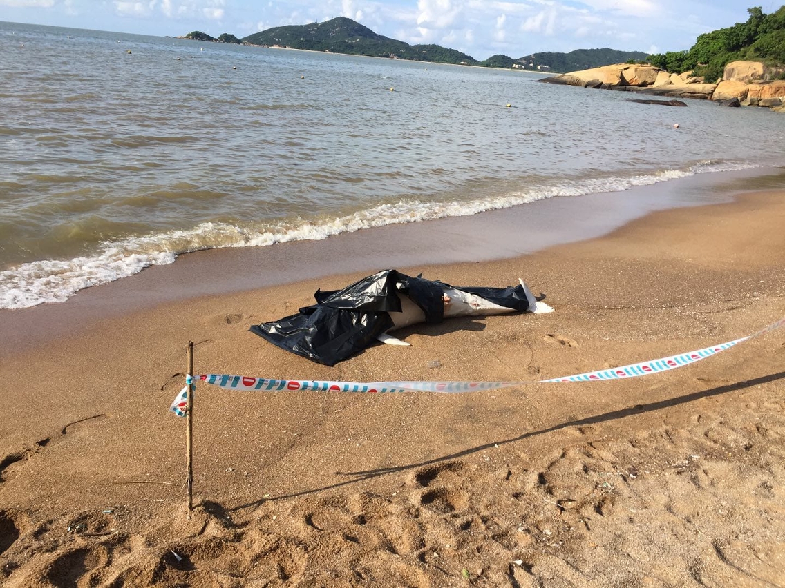 海事及水务局人员今早在竹湾海滩发现有一具海豚尸体冲上滩面。局方已通知市政署人员到场跟进。