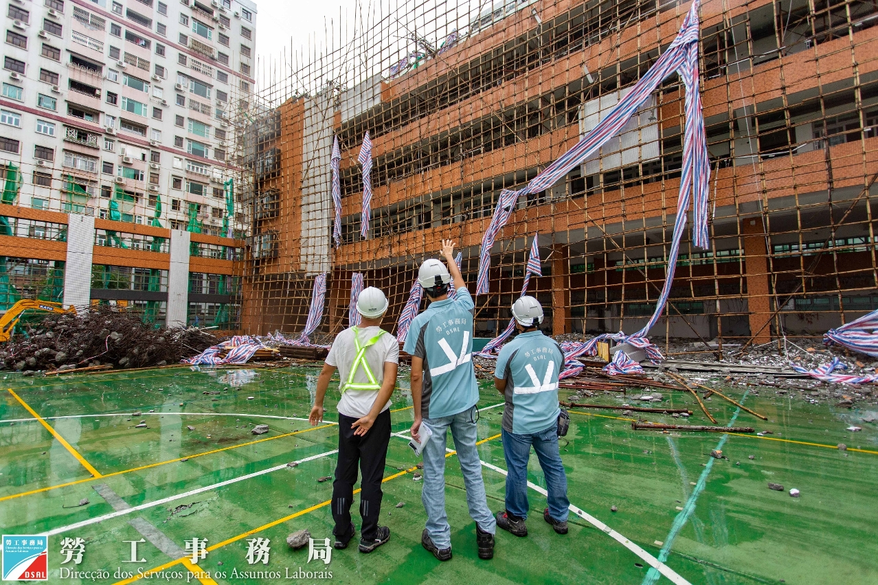 劳工局再次呼吁及提醒各工地承造商须重新检查场所内的设施,例如棚架、起重机械及电力设备等,尽快制定及展开相关修复工作,确保其处于安全状态下方可正常施工,保障工友及公众的安全。