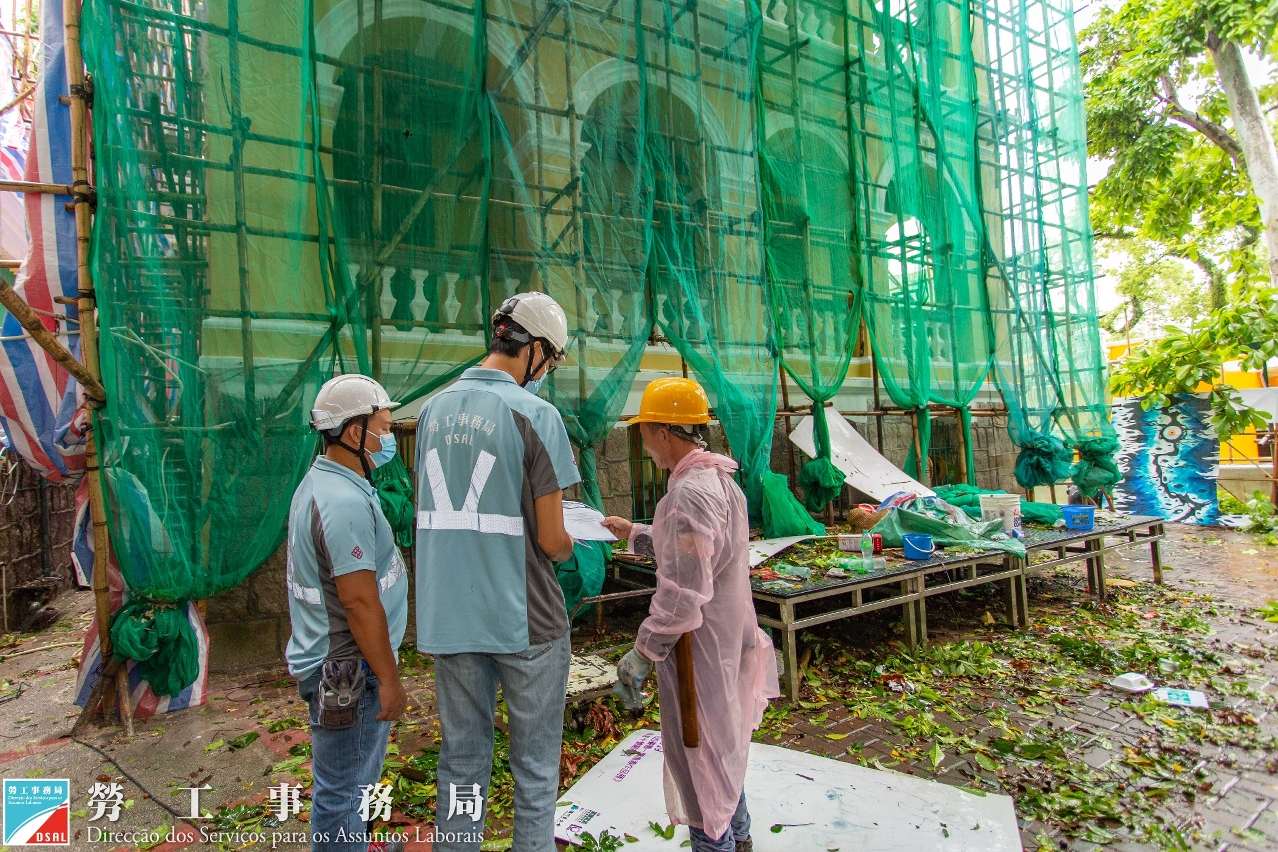 台风「海高斯」吹袭过后,建筑工地有可能遭受不同程度的破坏,劳工局于今日(19日)下午派员对风后存在职安健隐患的建筑工地或工程地点进行视察,一共巡查了31个建筑工地或工程地点,劳工局将继续派员到各建筑工地巡查及呼吁建筑工地复工前做好职安健工作。