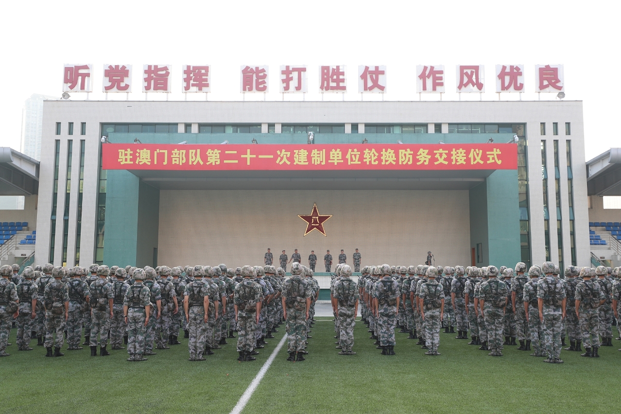 根据《中华人民共和国澳门特别行政区驻军法》和中央军委命令,中国人民解放军驻澳门部队于2020年8月29日清晨顺利完成进驻澳门以来第二十一次建制单位轮换。