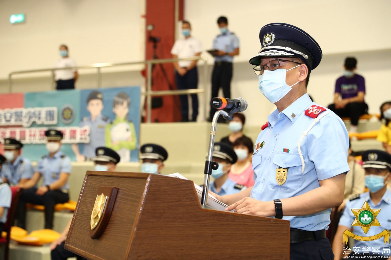 吴锦华局长在致辞时表示治安警少年团团员在过去一年积极参与各项交流学习、课程培训及公益活动,让「少年团」认识到作为公民必须热爱家国、遵守法纪的重要性,「少年团」亦担当起社区警务青年大使的角色,协助警方将防罪灭罪的讯息传递至社区;此外,还积极参与防疫、抗疫的工作,用实际的行动来表达自己对社会的关爱。随着是次迎新仪式,治安警少年团的团员已增加至177人,治安警察局在未来将持续地推动「少年团」队伍的发展,继续引领「少年团」与警队共同携手、防罪灭罪、参与社会工作,为培育本澳年青一代成为社会栋梁及青年领袖而努力。