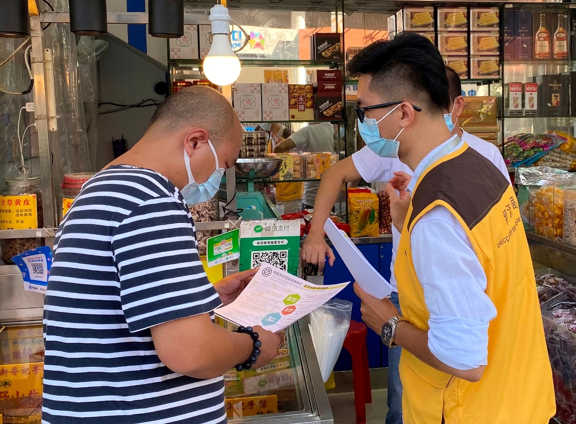 随着全国赴澳门旅游签注恢复及“十‧一”国庆黄金周临近,预计市面零售场所的人员流动将逐步增加,经济局及消费者委员会派员到旅游区,宣传零售业的防疫指引。同时,瞭解商户的落实执行情况,呼吁业界做好防疫工作,让旅客安心来澳旅游购物。