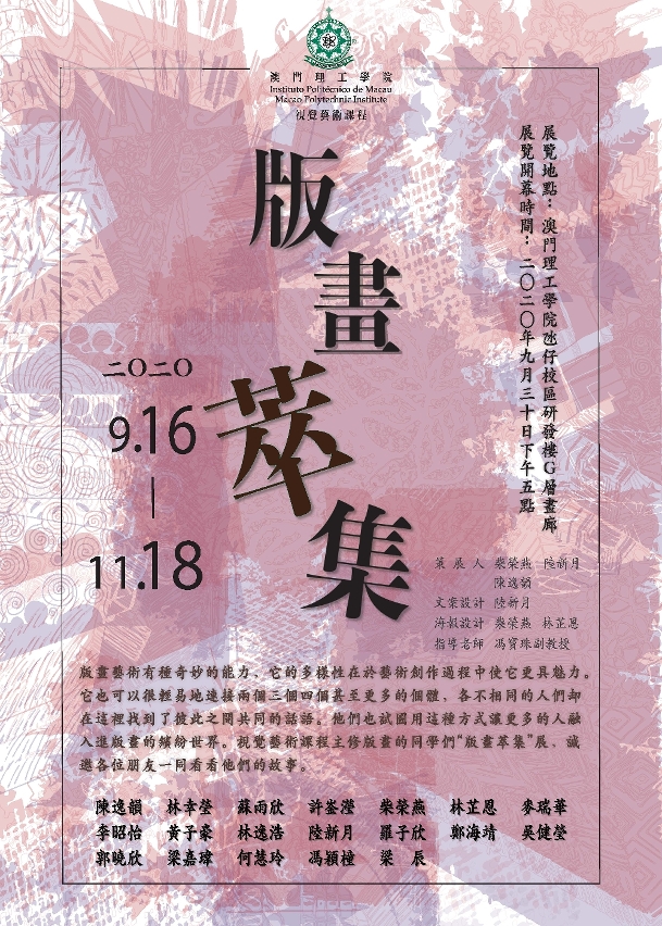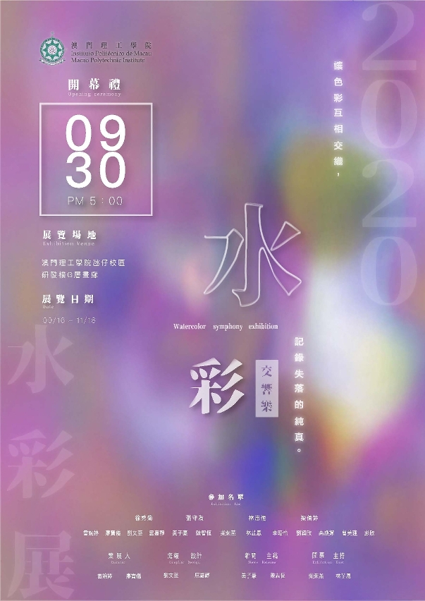 两项展览由9月16日至11月18日开放参观,展出超过60件澳门理工学院师生作品,涵盖不同种类的水彩和版画媒材,形式多样,内容丰富。是次联合展览旨在兼取水彩的刚柔并济,以及版画的多彩融合,期望展示师生之间教学相长的成果,共同分享艺术创作的喜悦。同时,亦藉此向特别的2020年,以及为澳门理工学院视觉艺术课程在氹仔校区正式开课,致以诚挚的祝福。