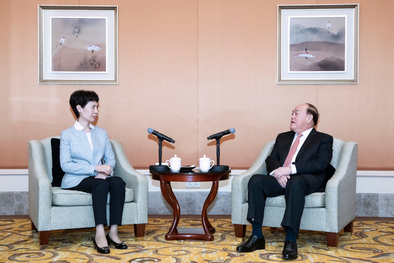 出席会面的还有行政长官办公室主任许丽芳;中国国际贸易促进委员会发展研究部部长聂文慧、国际联络部部长李庆霜,以及驻澳门代表处总代表崔文龙等。