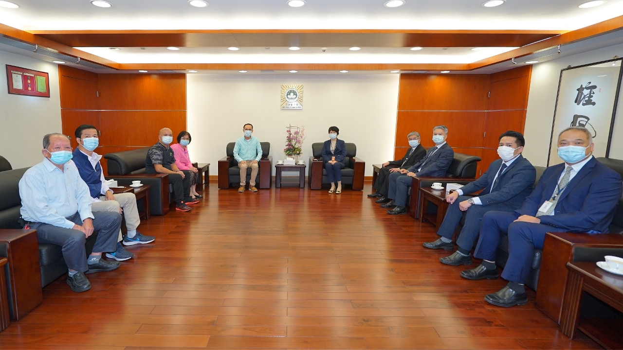 10月22日上午,筷子基坊众互助会会长郑鉴康及该会代表等一行6人拜访司法警察局,获副局长杜淑森、有组织罪案调查处处长薛专耀和社区警务及公共关系处处长郑宝湘等热情接待。双方就筷子基区近期的治安情况、优化警民沟通机制等问题交换意见。会上,郑鉴康会长向司警局致送锦旗,以表扬局方快速回应居民的治安诉求,持续派员净化社区治安环境。