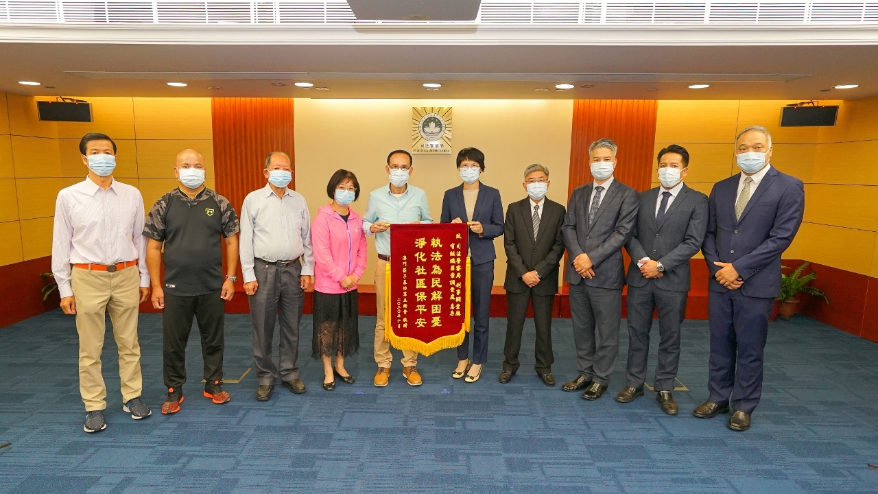 早前,司警局透过“司法警察局大厦防罪之友”的联络机制,接获筷子基区居民反映,区内某屋苑附近的休憩区出现大规模聚赌情况,严重影响居民的正常生活,并有可能引发治安问题。司警局非常关注此事,立即派员跟进并持续到该区打击非法聚赌活动,同时派员联同坊会代表在区内进行相关防罪宣传工作,采取打防结合的策略,有效净化社区治安环境。郑鉴康会长代表坊会向司警局致送锦旗,以表扬司警局及时回应居民对区内治安的诉求,并指出经警方持续执法,近期区内的治安环境有明显改善。