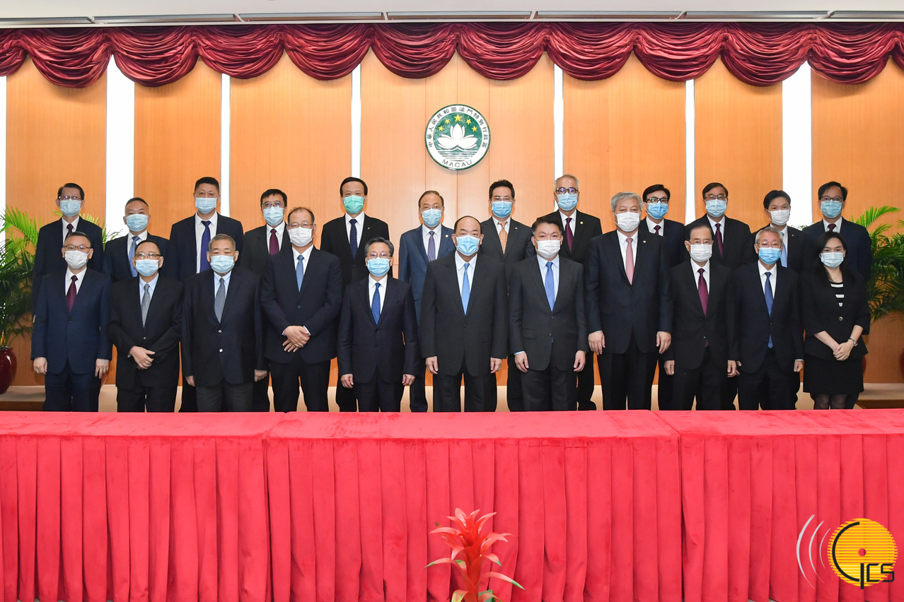 行政长官贺一诚今(27)日在政府总部会见澳门中华总商会理事长高开贤等领导层一行,就特区政府制订2021年财政年度施政报告听取意见及建议。