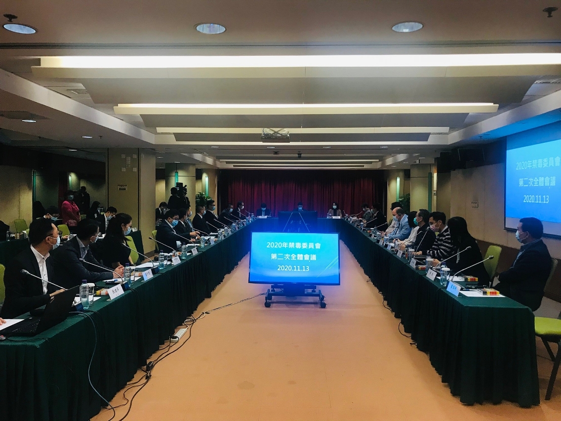 禁毒委员会已于本年9月18日进行换届,代主席韩卫局长代表委员会欢迎新任委员,同时也期望透过跨专业合作,有助预防及打击毒品事务。会上报告及总结2020年的工作情况,包括召开了两次全体大会及两次小组会议;组织两个小组成员拜访司法警察局,安排关注小组成员参观澳门戒毒康复协会BE COOL PROJECT;6月至9月期间邀请委员参与国际禁毒日线上系列活动,藉此结合政府和民间专业团体的力量,在抗疫期间加强本地交流合作,持续联动及深化防治滥药工作。