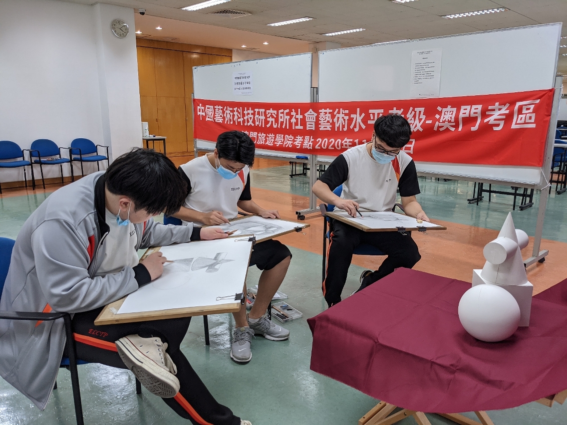 学院于2020年11月3日为中葡职业技术学校平面设计专业课程学生举办了首次素描3级考试,参加学生共17人;由中国艺术科技研究所社会艺术水平考级澳门考区办公室考官及学院创意艺术课程导师同场监考。