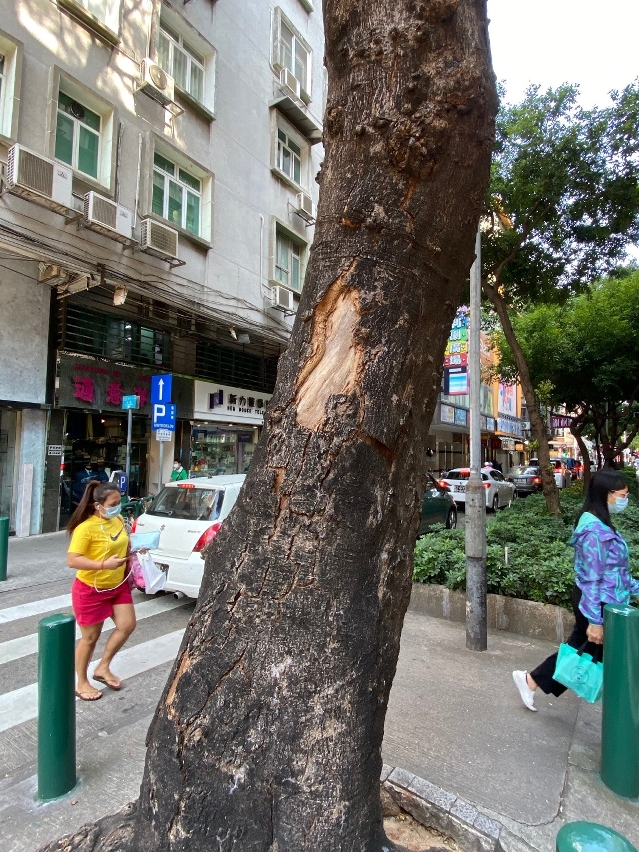 早前市政署树木管护人员为城市行道树进行养护期间,发现位于俾利喇街与飞能便度街交界的一株南洋楹树冠的粗枝枯萎量增多,树干和树基的表皮持续出现异常的开裂,更有多处已露出木质部。经技术人员使用树木仪器检查及比对该树木的表征,显示该树干和基部约有二分之一范围活性及整体生长呈下降趋势。市政署将持跟进该树状况,并采取养护措施,希望树木能恢复生机。