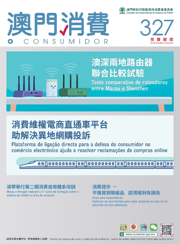 消费者委员会新出版的第327期《澳门消费》公布“澳深两地路由器比较试验报告”。今期《澳门消费》以一宗本澳居民与内地电商企业发生的网购争议,短时间获得退款的个案,介绍消委会与内地消费者组织跨域合作的进展与取得的成效。