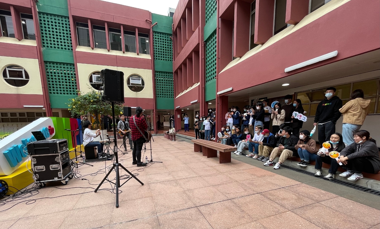 澳门理工学院学生事务处与学生会于期末考试前举办“考试加油站”活动,为准备考试的学生打气加油,营造积极温习考试、舒缓考试压力的校园氛围,传递积极向上的正能量。活动期间,同学们于祝福墙前拍照留念、学生会派发提神饮品及充满爱心的幸运小礼物,更邀请本地乐队「青原乐队」以压轴嘉宾的身份唱出对学生的鼓励,衷心祝福各位学生以最佳的状态考获满意成绩。