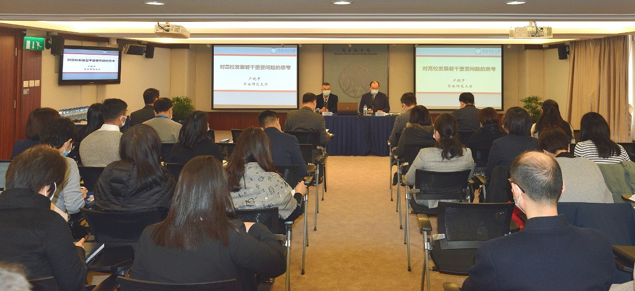 培训活动由高等教育委员会委员陈志峰主持,华南师范大学粤港澳大湾区教育发展高等研究院院长卢晓中、华南理工大学高等教育研究所副研究员焦磊来澳担任主讲嘉宾。卢晓中以“对高校发展若干重要问题的思考”为题,并结合内地高校的经验,详细介绍创新高校人才培养观、走向“社会中心”与高校分类发展、高校人才培养模式改革、大学文化建设等方面。其后,焦磊简介了世界各湾区发展与高等教育发展之间的关联,同时对比粤港澳大湾区与其他地区高教情况,提出创建“科创型”湾区的高等教育系统与人才建设需具备的要素。