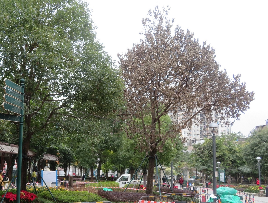 市政署一直密切关注并先后整治了多个褐根病区,移除病株、清除树头病根、换土、淋杀菌药消毒及挖掘阻根带阻断传染途径,以控制褐根病扩散,并重植树木绿化。