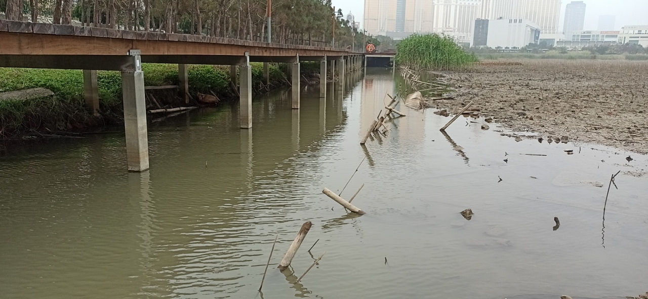 龙环葡韵湿地水位会受一年四季气候及季节降雨等因素而有所变化,属常态现象。按地球物理暨气象局公布的数据,二○二○年十月至十二月的总降雨量仅五十二点八毫米,而全年降雨量约一千七百毫米,低于二○一九年的二千二百四十八毫米。对以收纳天然降雨为水源的龙环葡韵湿地而言,降雨量减少,令湿地的水平面与日俱降,近期部份泥滩亦已外露。