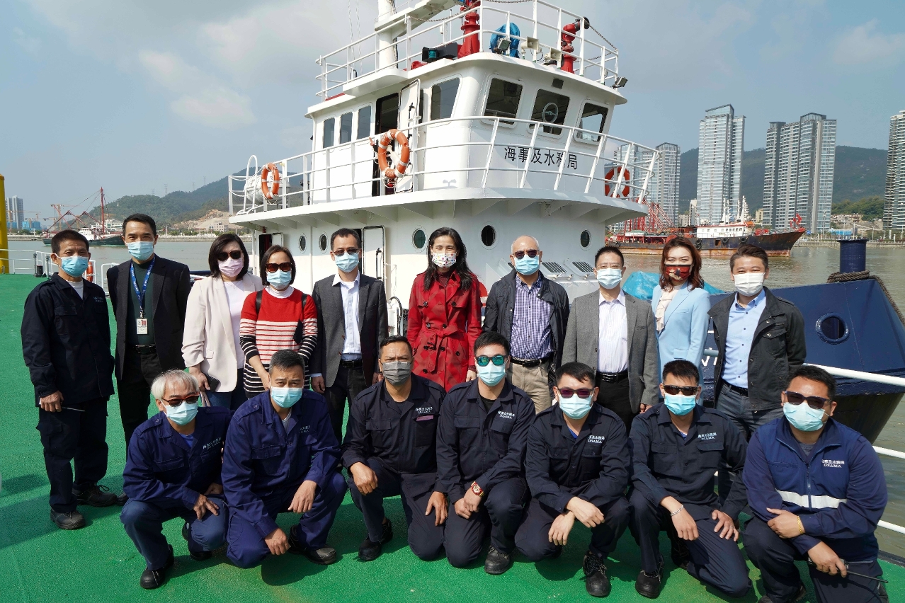 海事及水务局局长黄穗文与相关主管和同事今早(14日)到海上客运口岸、值勤设施和船舶及海事博物馆巡视,并视察驻守的救援船只和人员。