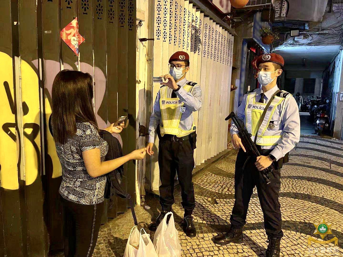在警察总局统筹下,治安警察局持续进行“冬防行动2021”,确保本澳在春节期间保持良好的治安环境。于2月16日至17日,澳门警务厅、海岛警务厅、情报厅、交通厅及特警队联合警犬组共派出65名人员,分别在澳门北区、中区、筷子基区、新桥区、新口岸区及氹仔市中心一带截查可疑人士,并巡查了多间卡拉OK及酒吧,以预防及打击各种不法行为;同时也在各区进行查车行动,以打击醉驾药驾等违法行为。