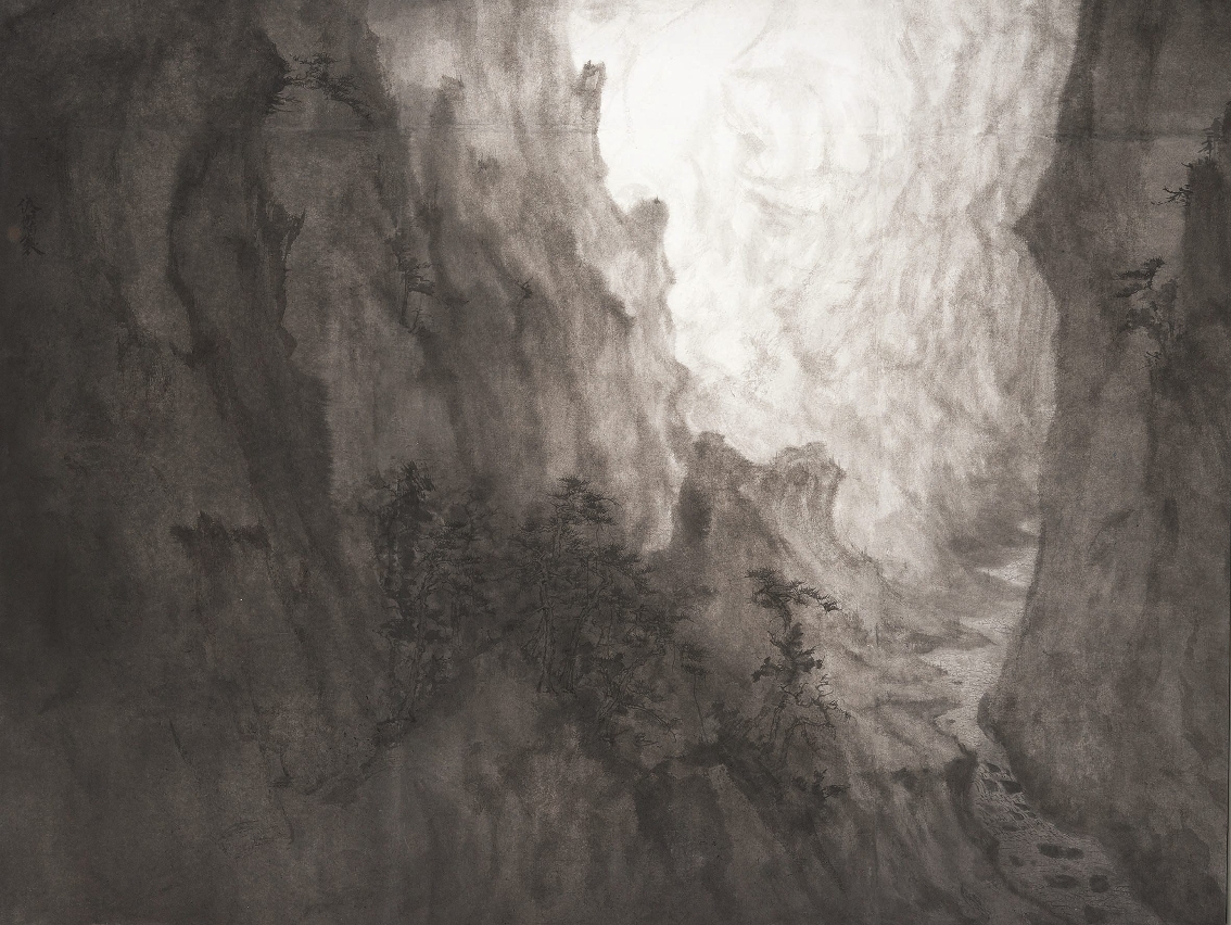 谭俊杰擅长运用宋人绘画程序并注入新的情调,格古韵新,造诣上乘,是次捐赠作品《此山中》正是其代表作之一。该画着力表达自然与人的关系,运用了传统国画笔墨及现代水墨手法,结合客观山石元素和主观环境感受,营造出既真实又虚假的心中世界。山石起伏,明晦有序,画面处理上亦富现代感。此画曾于2019年在澳门艺术博物馆与中国美术馆合办的“融──澳门艺术家作品特展"赴京展出,并荣获中国画评审奬,别具意义。
