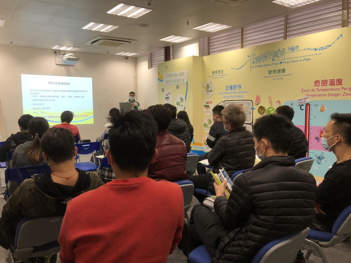 市政署食品安全厅一直致力推动食品安全教育与培训工作,恒常于每月最后一个星期四下午三时至五时,在佑汉小贩大楼一楼食品业界专区举办“食品安全与环境卫生基础班”。课程内容涵盖《食品安全法》、食安标准,以及食品安全操作指引等,藉此加深业界对《食品安全法》中所订明的责任及义务的认识,从而严格遵守法例及食安标准生产经营。同时,课程以《外卖及堂食处理食品卫生指南》为辅助教材,介绍食品的采购、贮存、处理、个人卫生及日常操作中容易忽略的食安要点等,并会根据“食品安全五要诀ABCDE”,向修读者讲解避免交叉污染(Avoid Cross Contamination)、谨慎选购(Buy Right)、保持清洁和彻底煮熟(Clean and Cook Completely)、危险温度带(Danger Temperature Zone),以及努力维护澳门食品安全(Efforts to maintain Macao food safety)等关键技巧及重要理念。