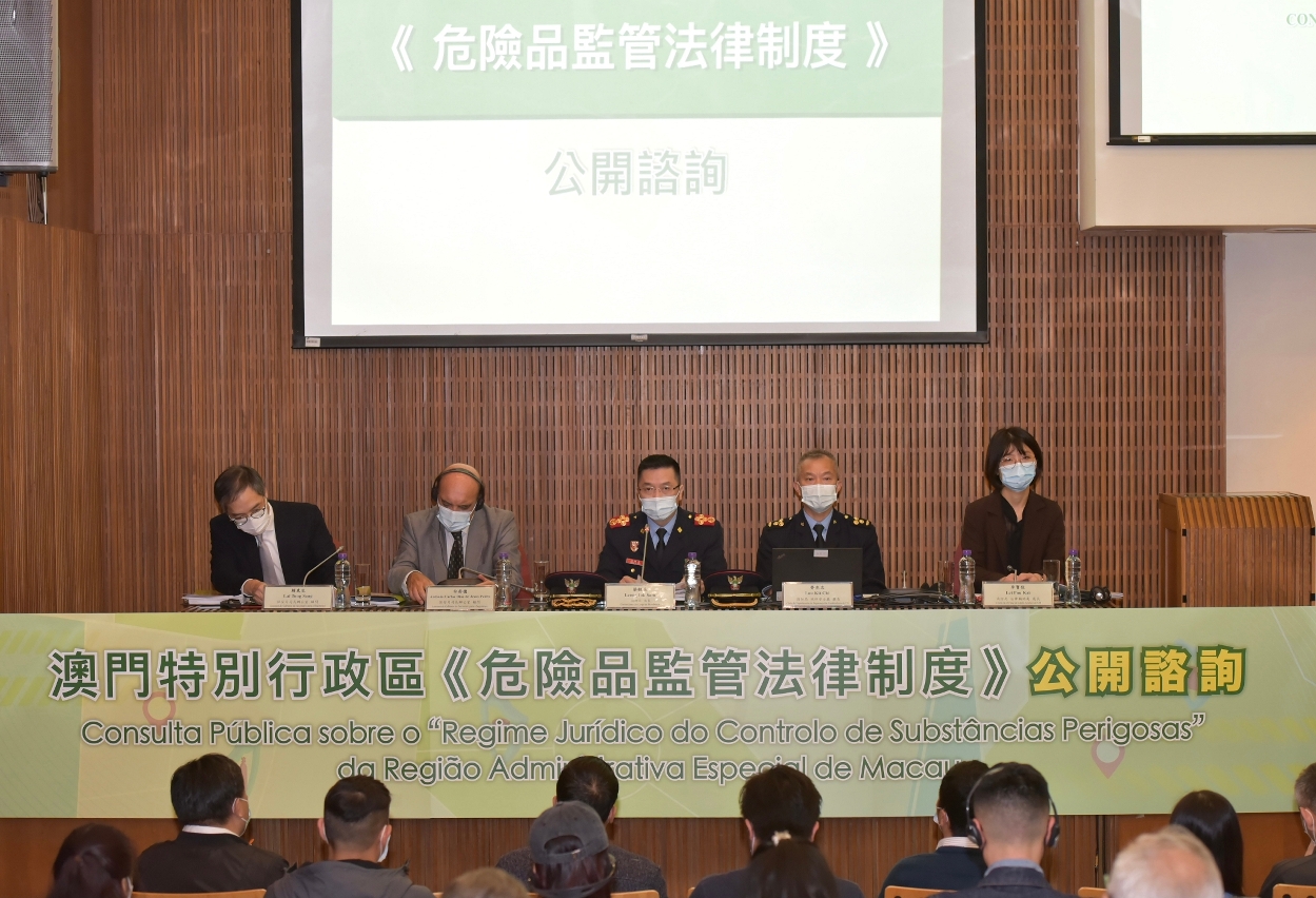 澳门特别行政区政府就制定《危险品监管法律制度》,由2021年1月23日至3月8日,展开为期45天的公开咨询,继早前完成了三场业界咨询会后,再分别于2月5日、20日及27日在水坑尾公共行政大楼地库演讲厅举行了三场公众咨询会,合共逾170名市民出席,其中有33名市民发表了意见及建议。