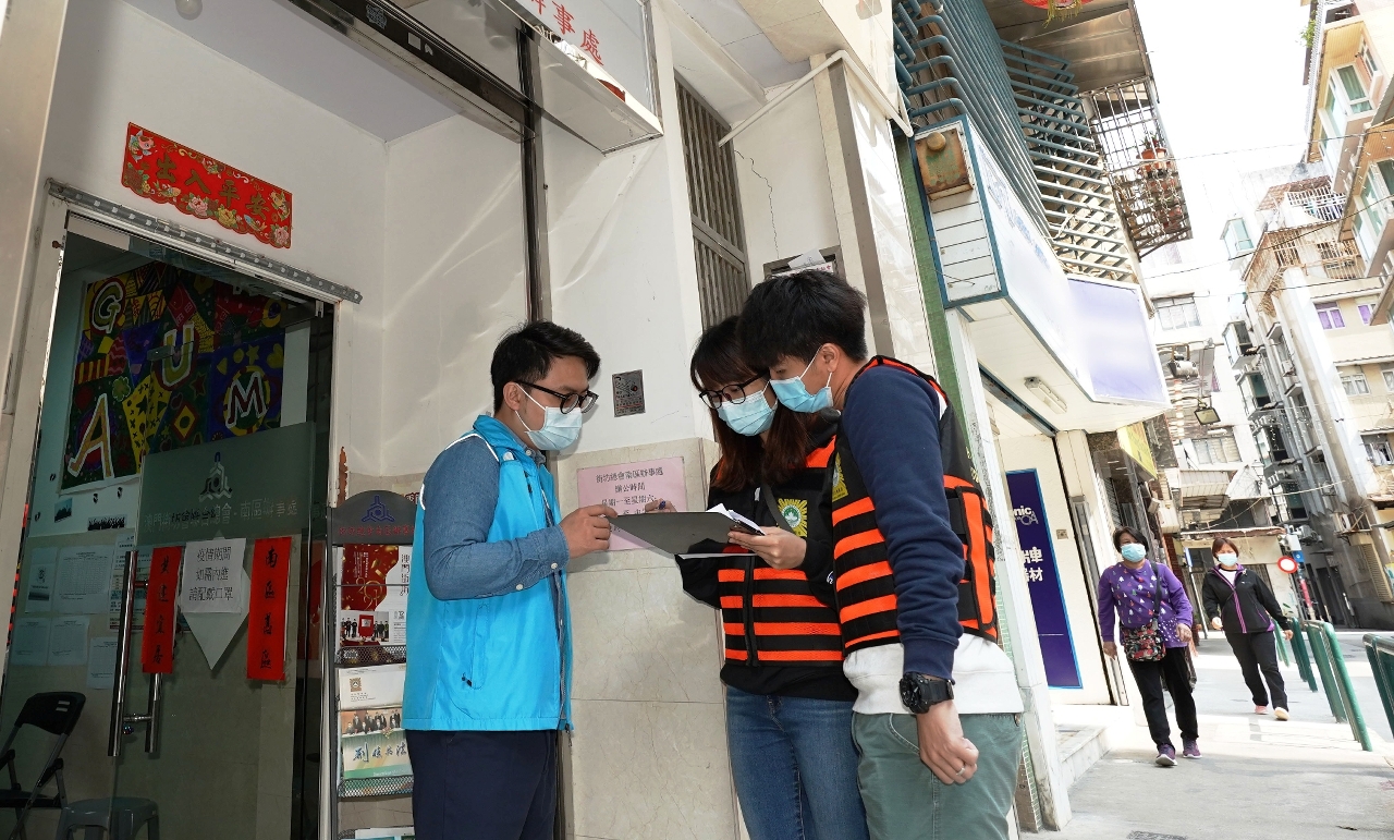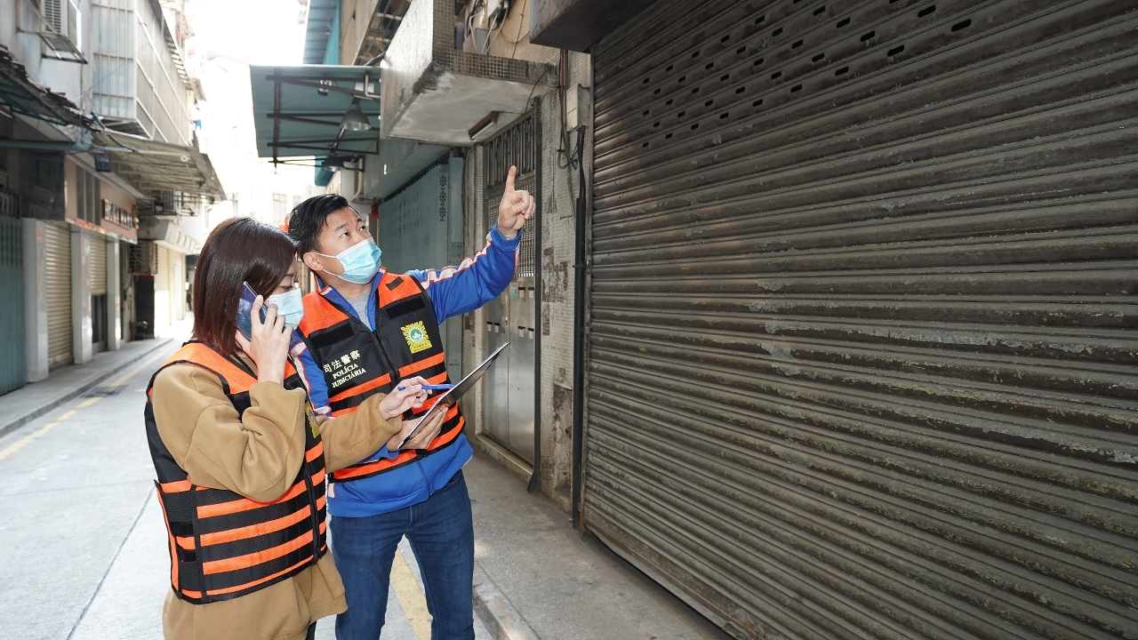 随后,司警局撤离小队人员分别前往局方负责撤离区域(即C区,包括十六浦延伸至安仿西街,再向东移至新口岸区一带)进行全面排查工作,期间除了收集并更新区内需撤离的住户和商户,以及需扶助人士等数据资料外,亦向居民和商户宣讲最新民防信息,提醒他们日常应密切留意当局发放的民防信息,做好应对台风准备工作。