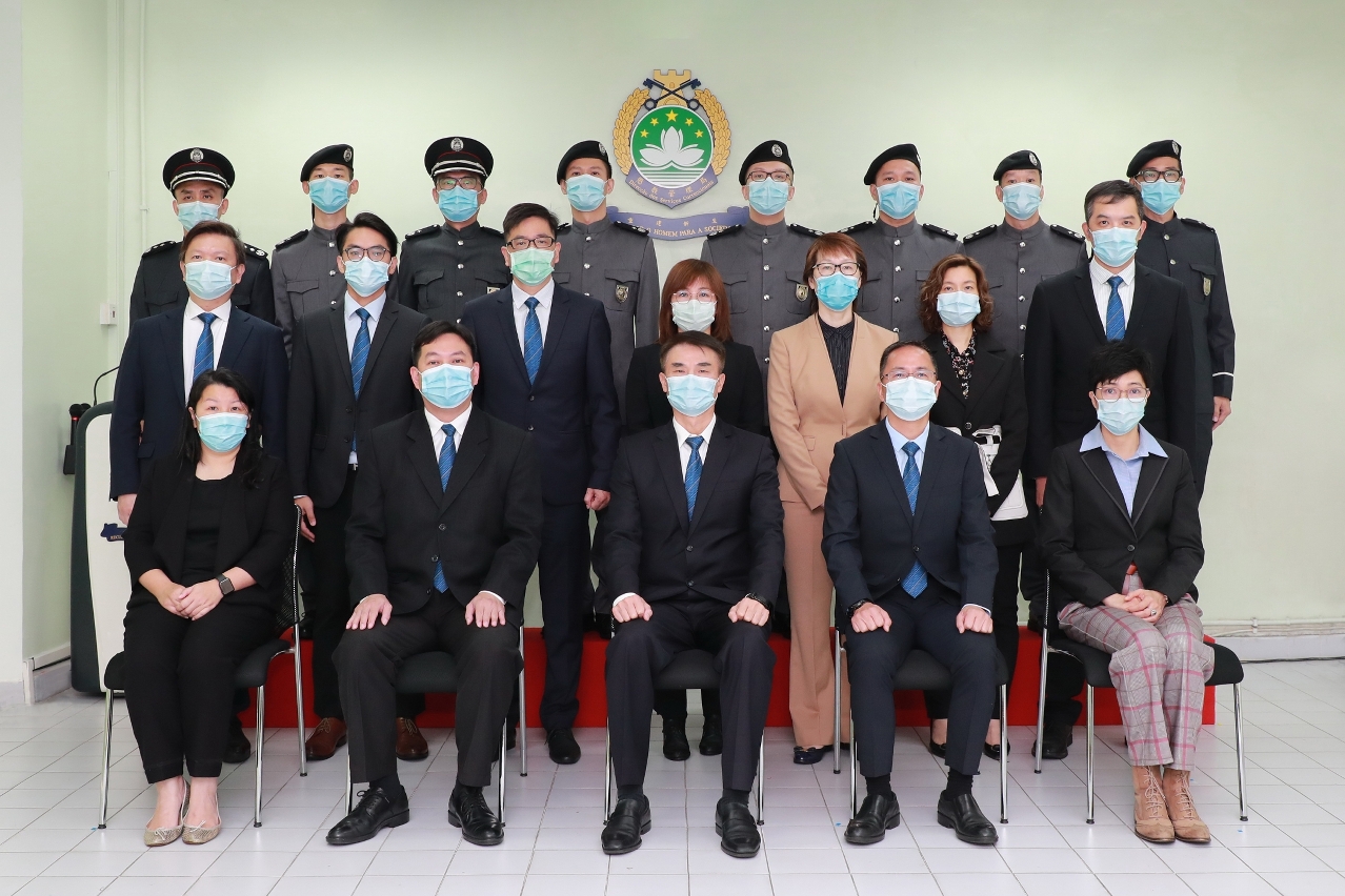 惩教管理局于3月10日上午在路环监狱进行警司就职仪式。由程况明局长主持及监誓,并在赵崇远副局长、林锦秀代狱长、余佩琳院长、黄妙玲厅长及各部门主管人员的见证下,六名获晋升的警司彭志辉、梁观廉、樊家文、李富安、陈少斌及高世豪宣誓就职。