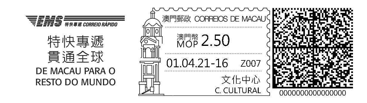 文化中心邮政分局将于本年4月1日起使用新款邮资标签机付费印志及宣传印志标签(式样见下图)。此款标签仅适用于收寄函件(包括小邮包及印刷品),不作个别销售。