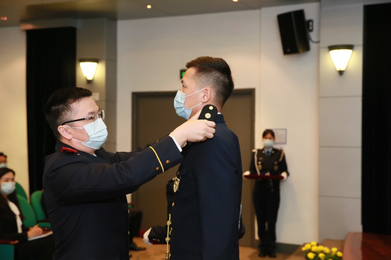4月8日,澳门保安部队高等学校举行第十六届消防官培训课程毕业典禮暨副一等消防区长就职仪式。典礼由保安司黄少泽司长主持,与嘉宾共同见证毕业学生就职成为消防局副一等消防区长。