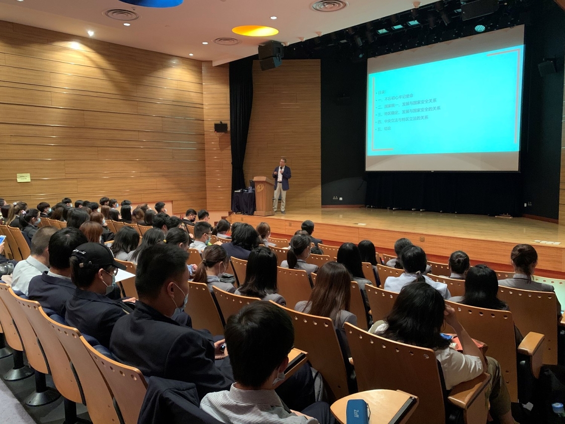 4月15日是国家“全民国家安全教育日”。为了响应澳门特区政府推行有关国家安全教育工作,加强青年学生对国家《宪法》和《基本法》相互关系,以及对《维护国家安全法》的了解和当中要义的认识,澳门旅游学院于4月13日下午,透过澳门基本法推广协会协助,邀请到澳门大学法学院骆伟建教授于学院为学生就《宪法》、《基本法》与《维护国家安全法》进行专题讲座,约150名学生出席。