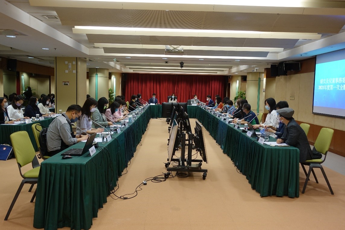妇女及儿童事务委员会2021年度第一次全体会议今(26)日在教育及青年发展局一楼仲尼堂举行,由妇女及儿童事务委员会主席、社会文化司欧阳瑜司长主持。主要议程包括:汇报委员会工作情况,简介本澳应对家庭暴力的协作机制,简介社会工作局“家庭生活教育计划”施政项目,就本澳妇女及儿童政策和社会问题交换意见等。