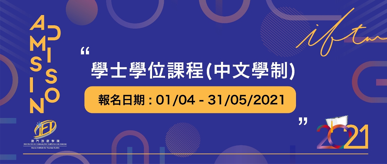 澳门旅游学院学士学位课程 (中文学制)以中文授课。课程亦着重学生在英语水平提升、理论与实践并重,为学生提供全方位的学习机会。课程以单元形式上课,为在职人士提供弹性。此外,超过600家遍布于环球的实习机构可供学生自由选择,学生通过全职或兼职实习,实践所学。课程设有学费全免奖学金,合资格学生可申请豁免实践课和实习。如欲了解更多课程信息,请浏览学院网页 www.iftm.edu.mo。