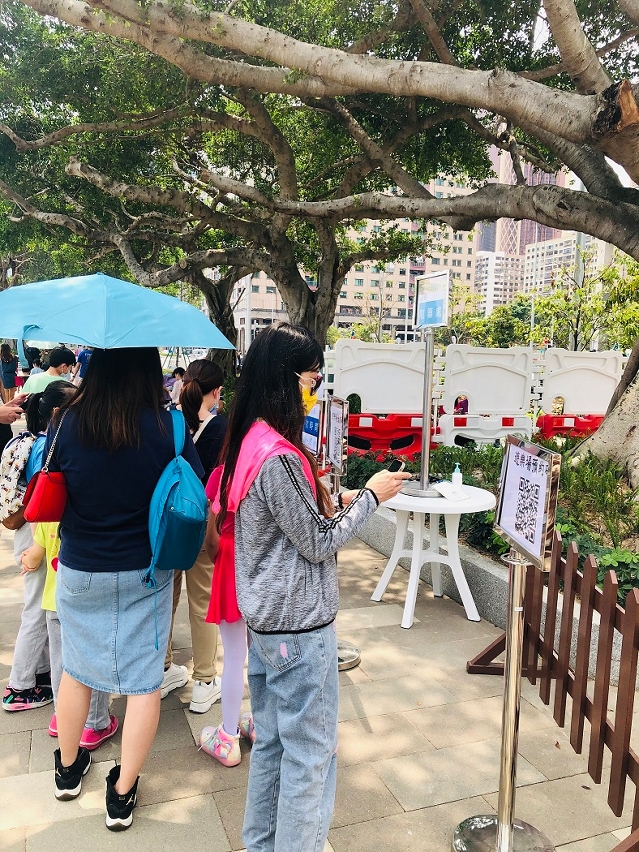 市政署今(1日)上午十时对观音像海滨休憩区儿童游乐场实施人流管制,秩序良好。今日黄昏六时前的时段已额满,敬请市民留意。而网上预约系统已开放,市民可透过扫描二维码或登入“绿化设施预约系统(个人)”预约傍晚七时以后的场次。