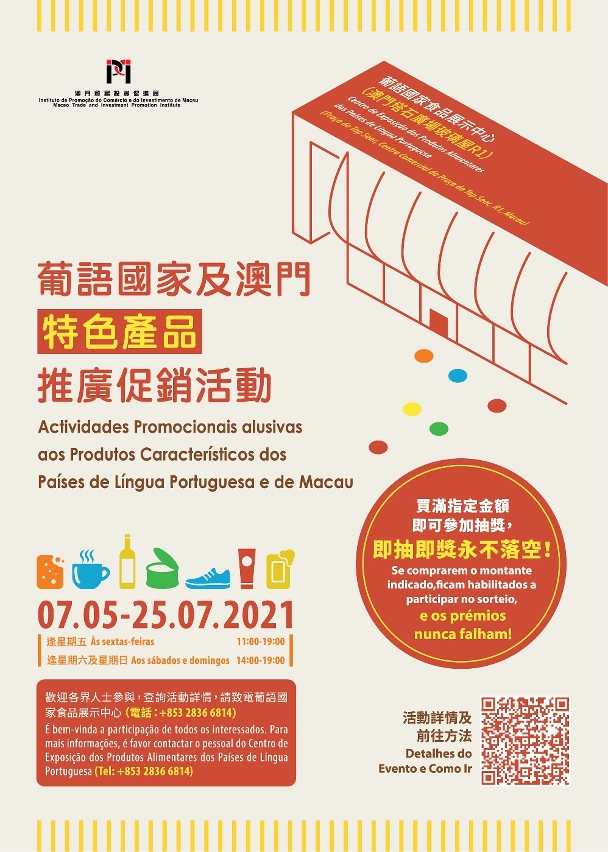 葡语国家食品展示中心自2016年开设至今,一直致力推广宣传葡语国家产品,于2020年11月起更增设澳门特色产品展示区。葡语国家食品展示中心位于塔石广场商业中心(塔石玻璃屋)R1,对外开放时间为周一至五上午11时至晚上7时;周六、日下午2时至晚上7时(逢周二及公众假期休馆)。如对是次推广促销活动有任何查询,可致电:(853)2836 6827了解详情。