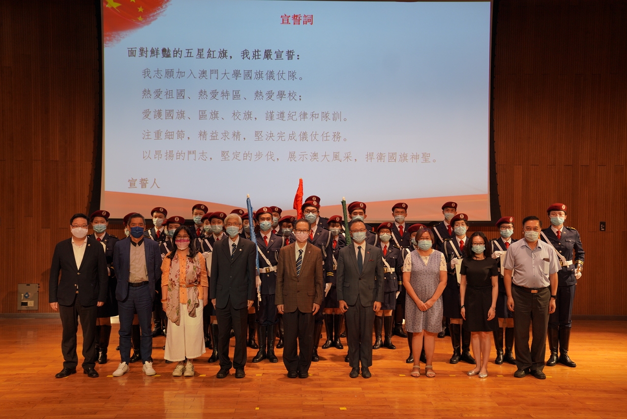 澳门大学国旗仪仗队举行换届仪式。仪式上进行了任命和交接仪式,并对过去一年表现优异的仪仗队队员进行了表彰。