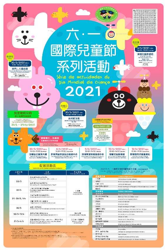 为了庆祝6月1日国际儿童节,多个政府部门及民间团体共同举办“六.一国际儿童节”系列活动,主题为“儿童权利公约"中的参与权,藉以唤起社会关注儿童的权利和福祉,同时让本澳市民一同感受节日气氛,欢度儿童节。