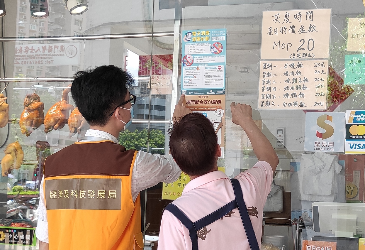同时,为让居民及商户瞭解“电子消费优惠”的使用规则,经科局持续广泛宣传,已制作使用规则宣传海报,并透过实地向商户派发、商会协助向会员分发等方式,在市面各商业场所张贴。